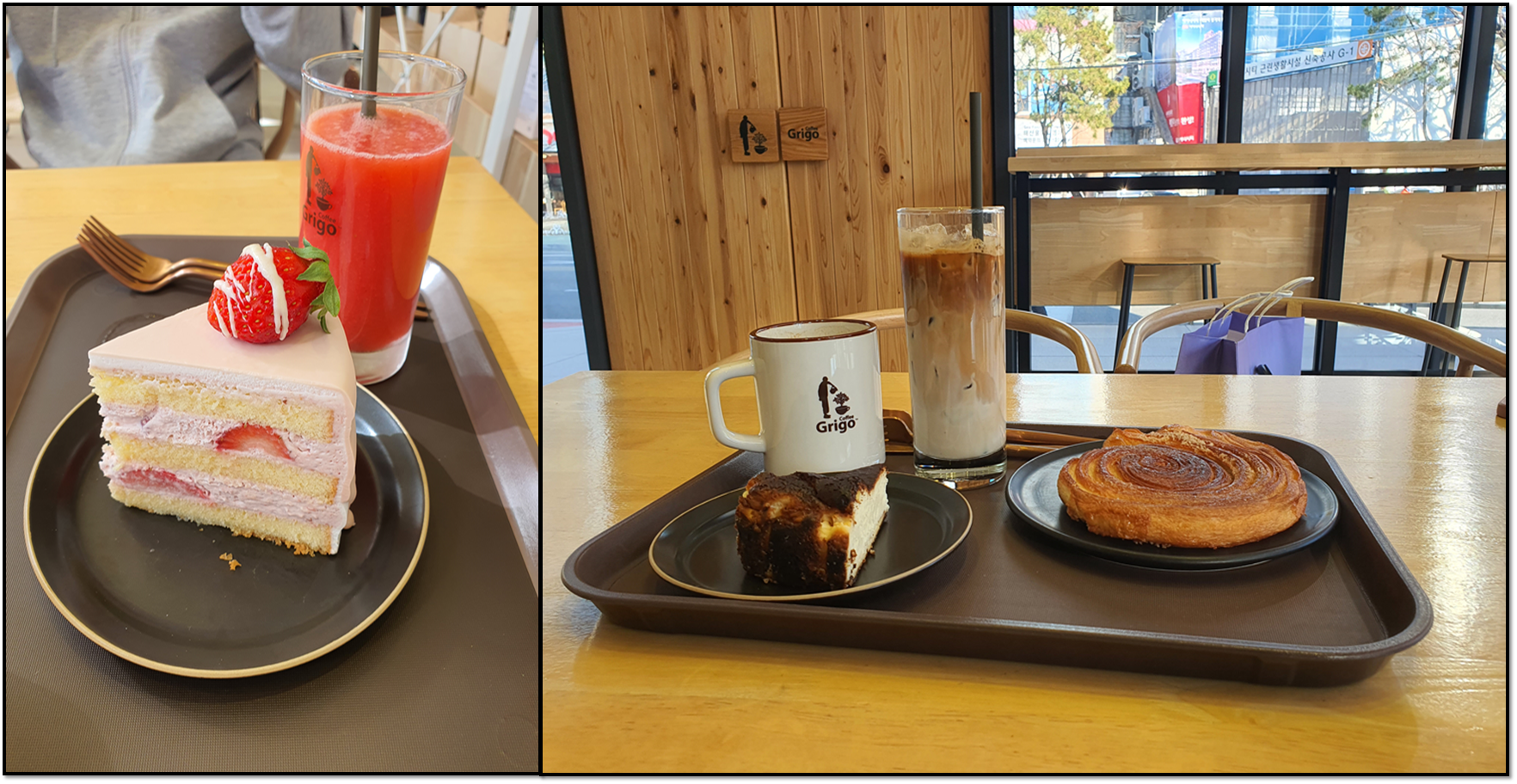 ▶나는 두 번에 걸쳐서 방문을 했는데 빵도 커피도 맛있었다. 친구는 "설향 딸기 착즙 주스"를 시켰는데 맛있다고 한다. 빵이 맛있긴 했지만 케이크 쪽이 좀 더 보들보들하고 맛있었는데 개인적인 생각으로는 케이크 만드는 실력이 조금 더 좋았던 것 같다.