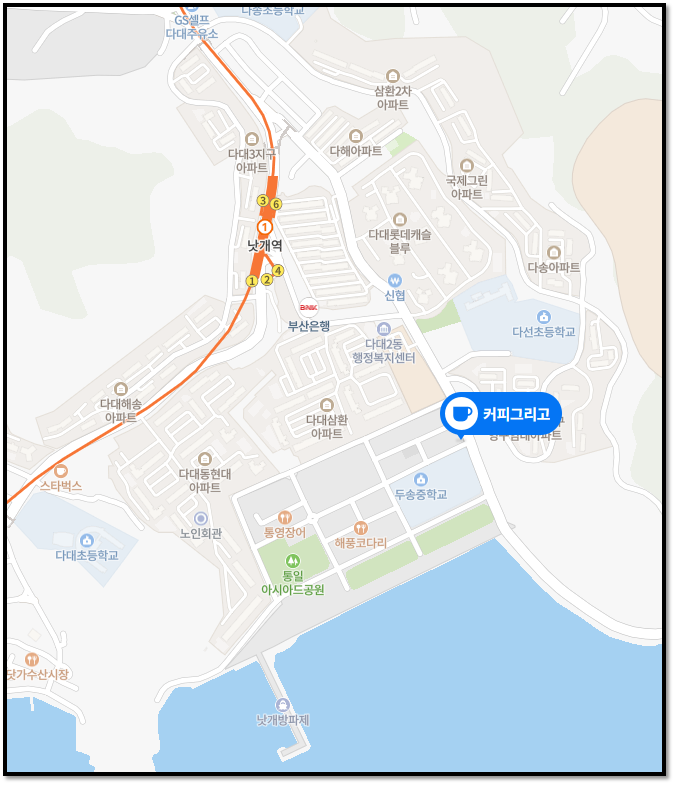 ▶위치는 다대포 매립지 방면으로, 두송 중학교 옆에 있다.